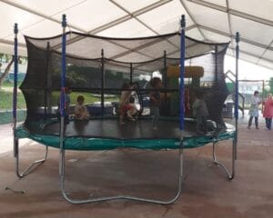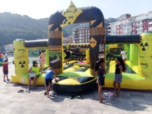 Hinchable nuclear donde los niños/as tendrán que desafiar a la explosión nuclear saltando y agachándose por los palos locos.