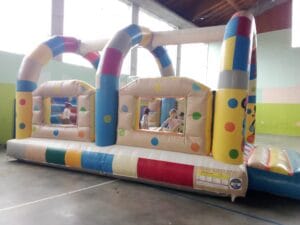 Un hinchable que hará las maravillas de los niños corriendo, saltando y luchando con los pivotes. Inspirado en personajes Disney.
