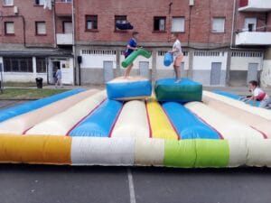 Mantendu oreka eta bota zure aurkaria! Puzgarri dibertigarri honetan, bi parte-hartzaile podiumen gainean igotzen dira eta elkarren aurka lehiatzen dute espumako barra bigunekin. Helburua bestea lurrera botatzea da (puzgarri bigunaren gainera), norberaren orekari eusten diogun bitartean.